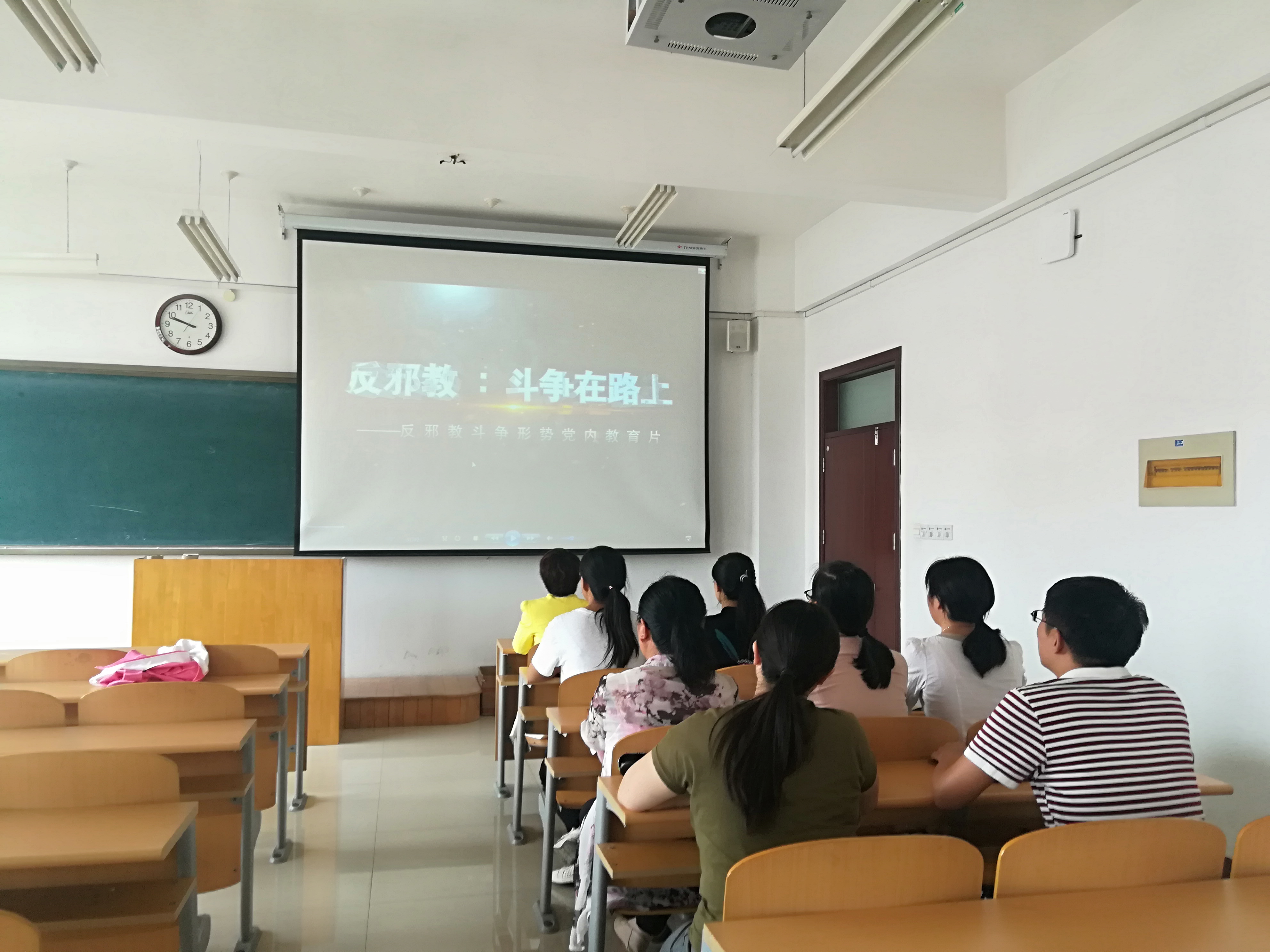 为进一步增强教研室教师抵御邪教危害的意识,提高认识邪教、抵制邪教的能力,9月19日,我院教工第二党支部组织全体在校教师集中观看了教育片《反邪教:斗争在路上》。