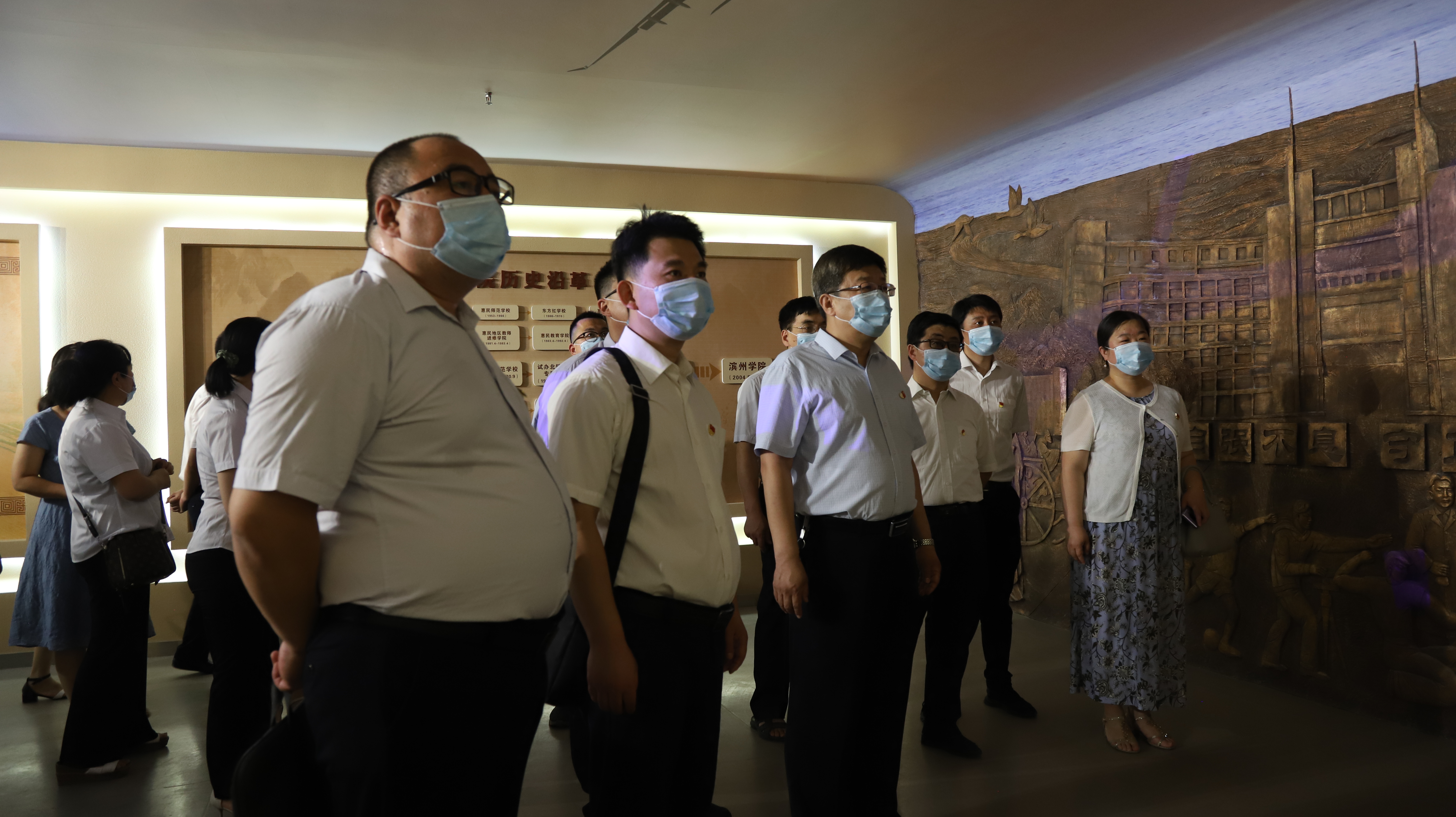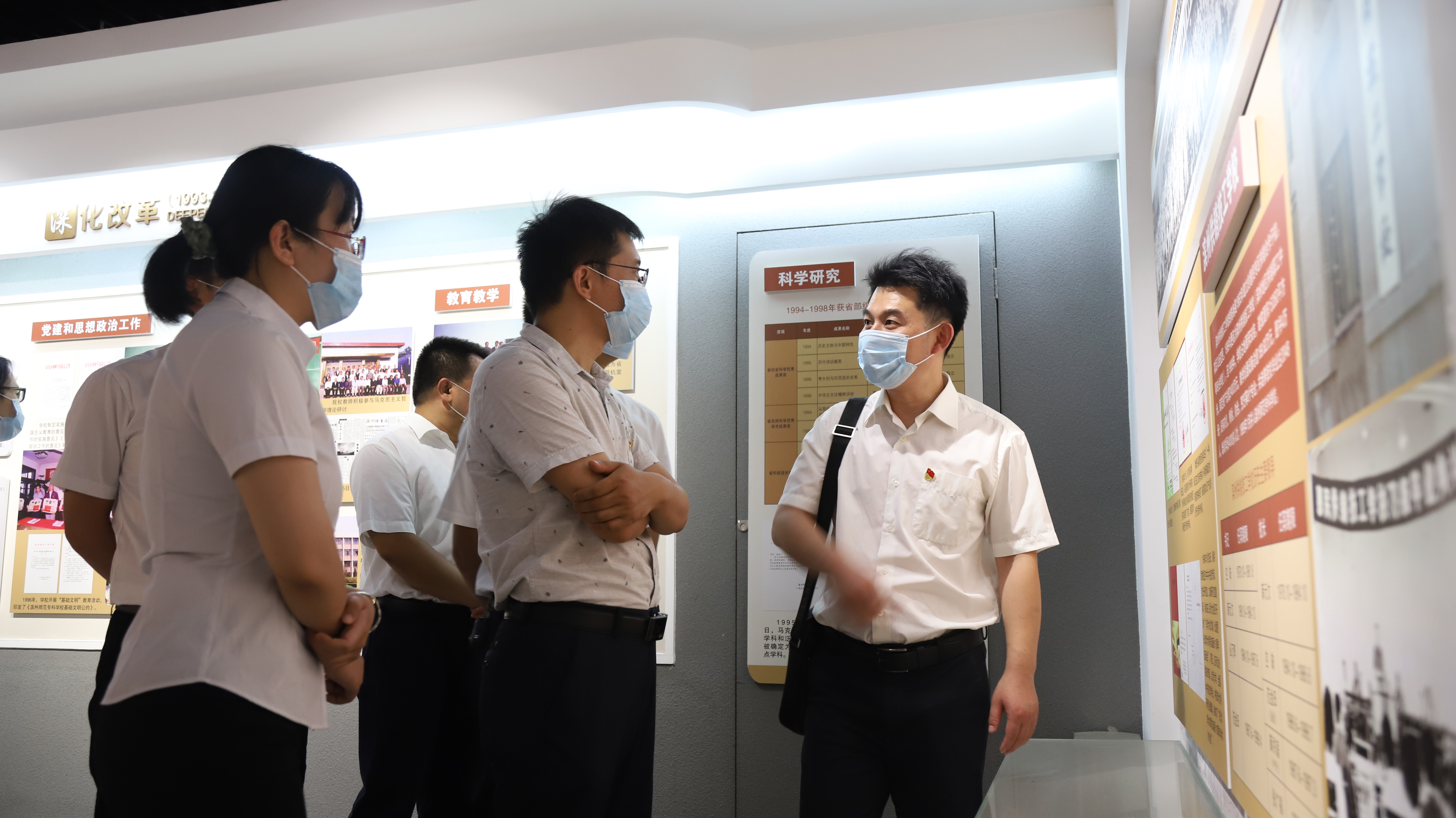 全体党员胸前佩戴党徽,举起右手,在庄严的党旗和入党誓词前宣誓“我志愿加入中国共产党,拥护党的纲领,遵守党的章程,履行党员义务,执行党的决定,严守党的纪律……”。重温入党誓词后,全体人员参观了我校校史馆。青山依旧在,砥砺踏歌行。在一段段文字、一张张图片、一件件实物等宝贵资料面前重温了学校厚重的历史、沧桑的发展历程和取得的辉煌成就。