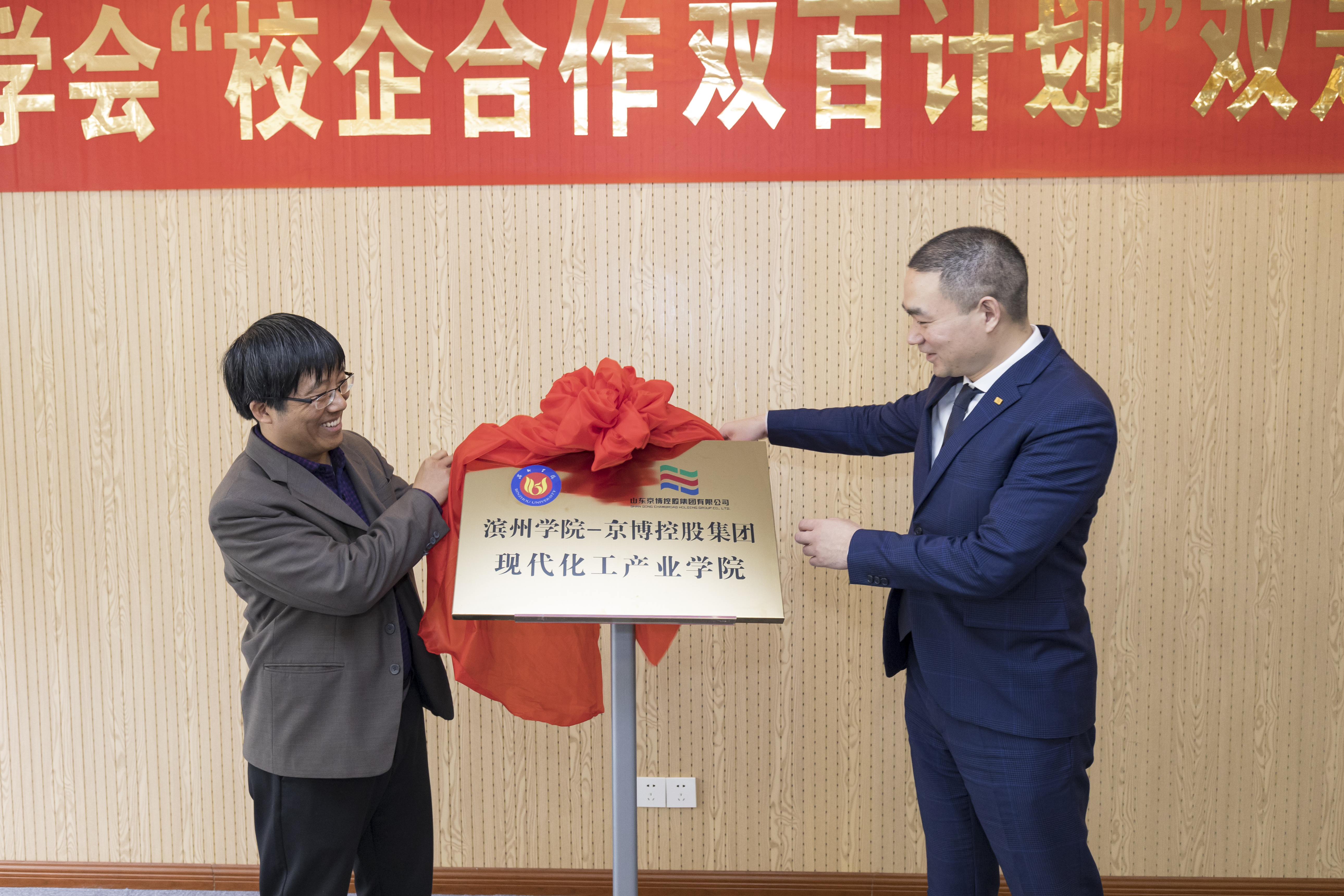 3月29日,我校与山东京博控股集团有限公司共建现代化工产业学院签约暨揭牌仪式在京博研究院研易楼举行。本次活动正值中国高等教育协会“校企合作 双百计划”双走访活动,协会专家一起出席并见证了揭牌暨签约仪式。