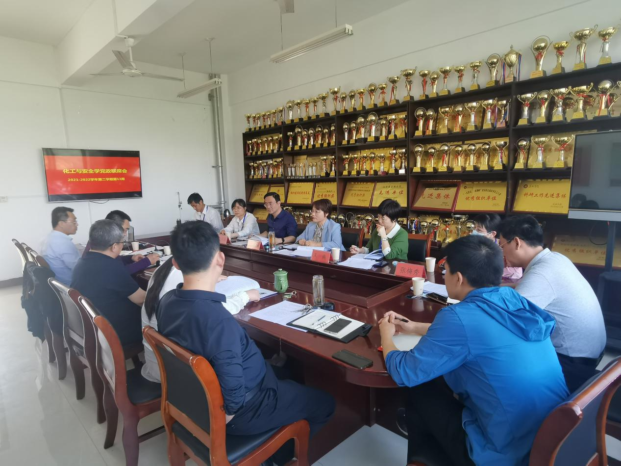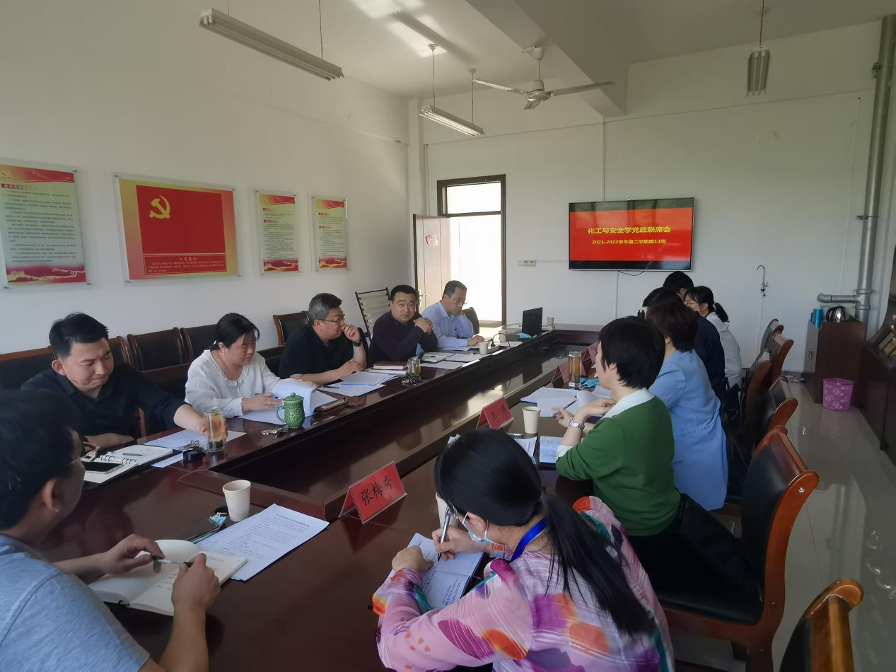 2022年5月17日15点30分,化工与安全学院召开党政联席会议,学院党总支书记王建主持会议,党政班子全体成员参会。滨州学院第二巡察组全体成员列席会议。