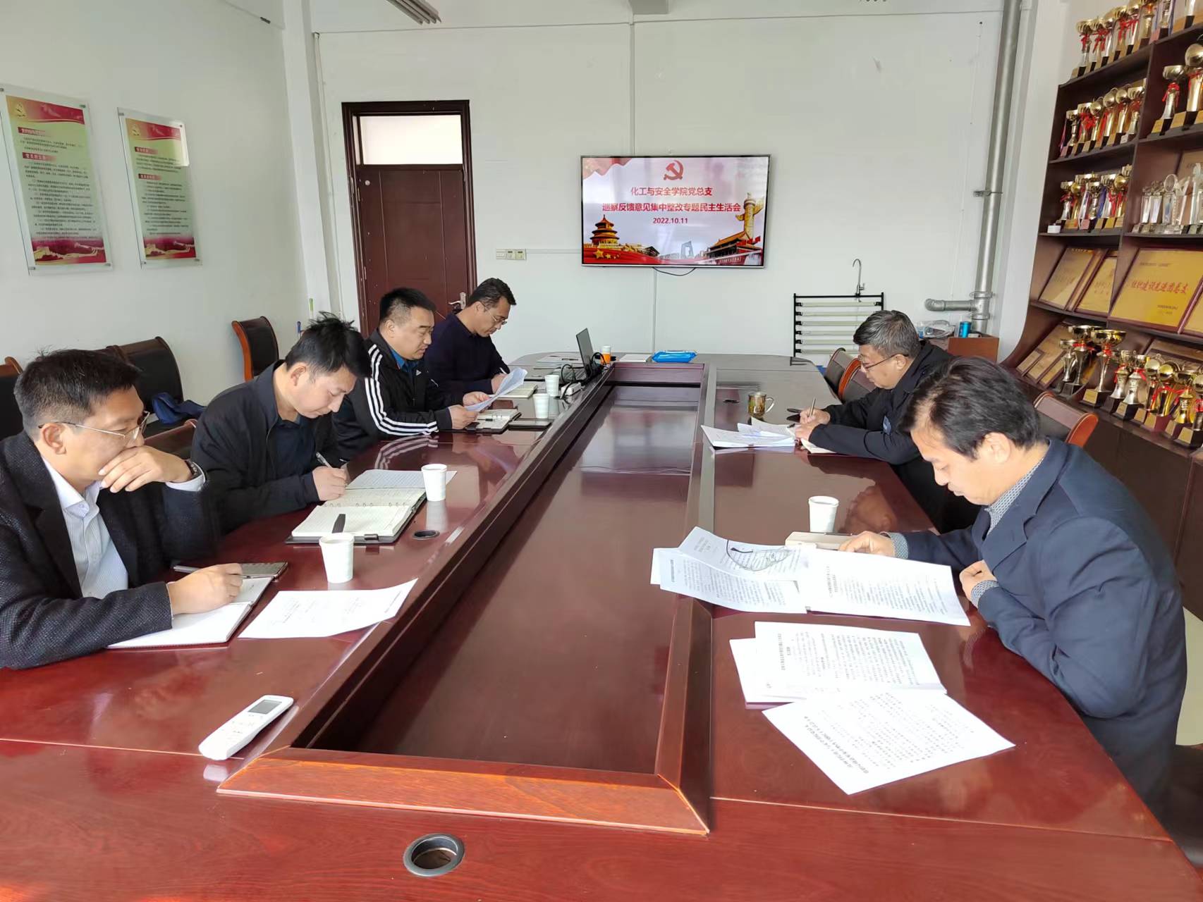 10月11日,化工与安全学院党总支在8-316会议室召开巡察整改专题民主生活会,学院党总支书记王建主持,班子成员参加会议。学校纪委纪检监察室主任张志明到会指导。