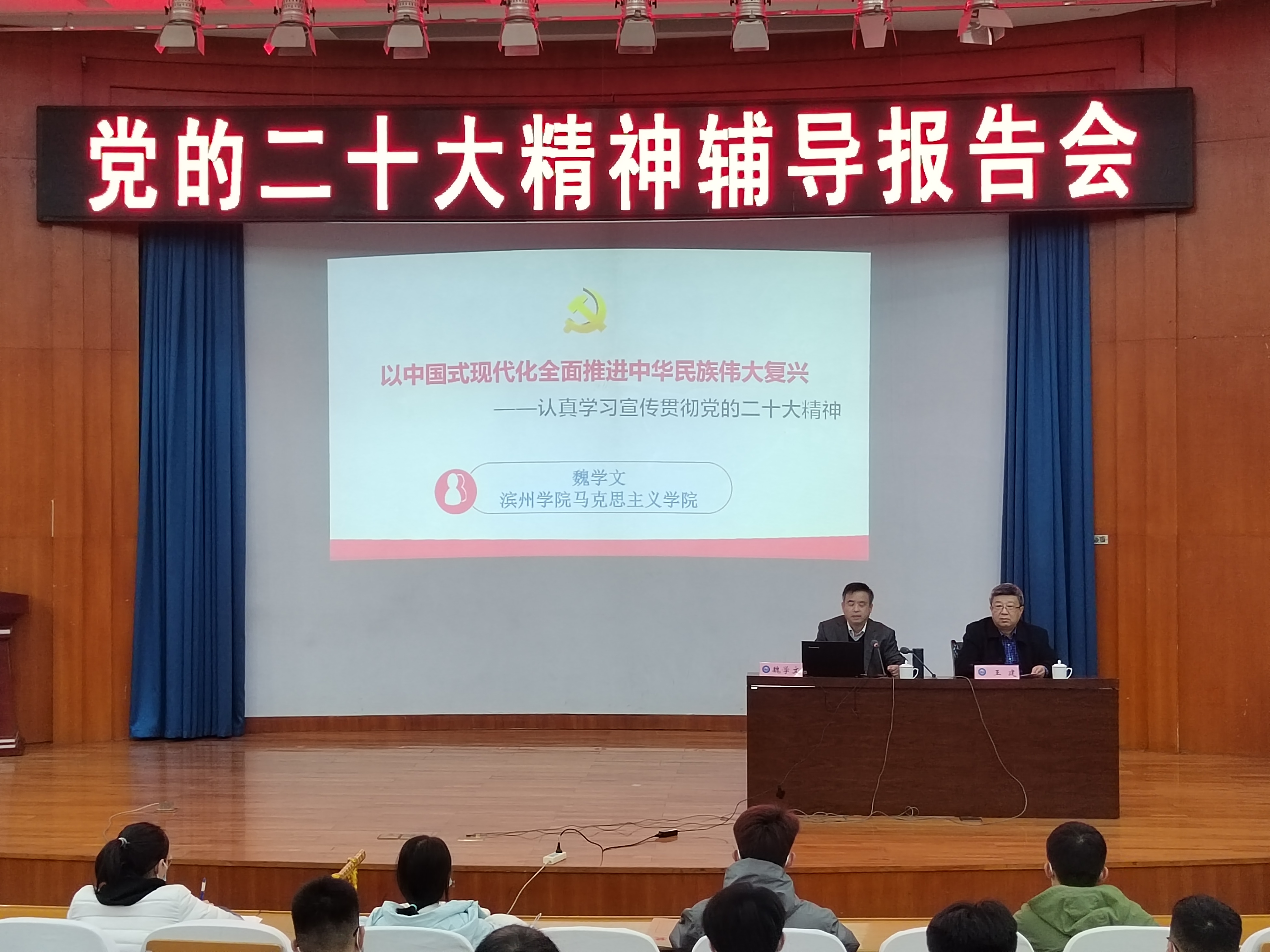 魏学文教授以《以中国式现代化全面推进中华民族伟大复兴——认真学习宣传贯彻党的二十大精神》为题,围绕深刻认识党的二十大召开的重大意义,党的二十大报告的主要内容,中国式现代化的科学内涵,中国式现代化的战略安排等四个方面,全面深入地为现场师生讲解了党的二十大主题和主要成果、过去5年的工作和新时代10年的伟大变革,清晰透彻地解读了党的二十大报告确立的重大论断和战略思想。魏教授的报告站位高远、视野开阔、分析透彻、内容丰富、深入浅出,结合具体案例,引用了大量详实的数据,突出三件大事、十六个方面伟大成就、四个里程碑意义和中国式现代化的科学内涵、本质要求和五大原则等重要内容,对党的二十大精神作了系统宣讲和深入阐释,具有很强的政治性、理论性、实践性和指导性,是认真学习宣传贯彻党的二十大精神的重要引导。