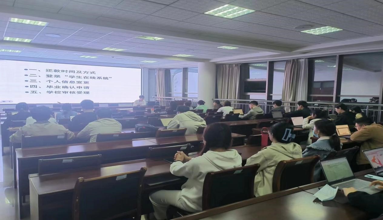 为进一步做好毕业生国家助学贷款确认管理工作,加强对贷款毕业生的后续服务,确保国家助学贷款工作有序开展,4月21日,我院在九教313教室开展毕业生诚信教育谈话暨助学贷款还款确认专题培训会议。