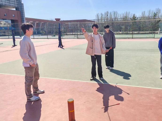 春风送暖,绿柳扶苏。活动在温暖轻松的气氛中拉开帷幕。活动负责人提前就位,在校篮球场布置好活动道具,同学们以宿舍为单位在活动场地集合并完成签到。随后活动正式开始,第一个游戏投壶调动同学们的积极性,参赛同学站在投壶线上, 参赛同学轮流进行投掷,每人投掷4次,第二个游戏同心鼓,队员将一个网球放在鼓面上队员用手拉起绑在鼓上绳子的一端通过大家的通力协作鼓有节奏地平稳地把球连续地颠起。这些小游戏培养了宿舍成员团结一心精神,本次活动在欢声笑语中圆满结束!