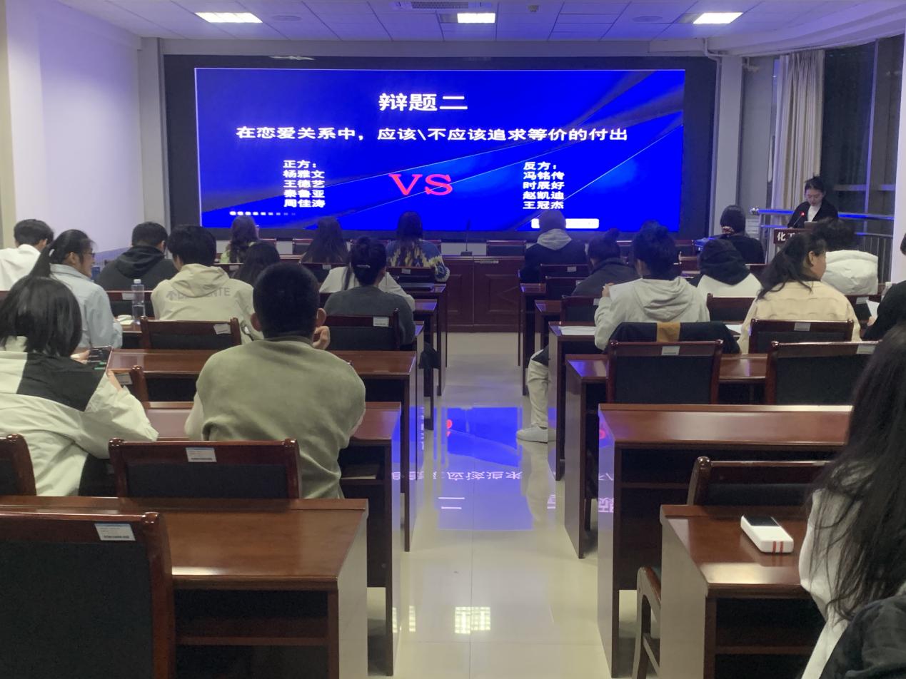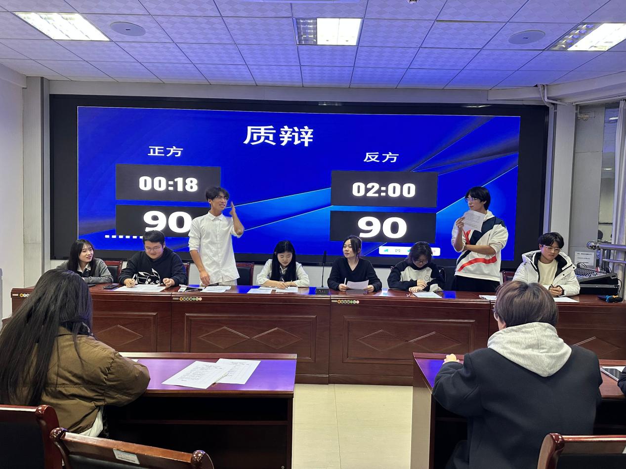 11月23日晚,我院在九教313教室举办以“奋进青春,以辩为友”为主题的辩论赛决赛。此次活动由辅导员姚斌及学生会代表担任评委,旨在通过辩论的形式,提升学生随机应变和语言表达能力,为校园文化生活增添色彩。比赛围绕“短视频能否提升认知能力”和“在恋爱关系中,应不应该追求等价付出”两个论题展开,吸引了众多学生的关注和参与。