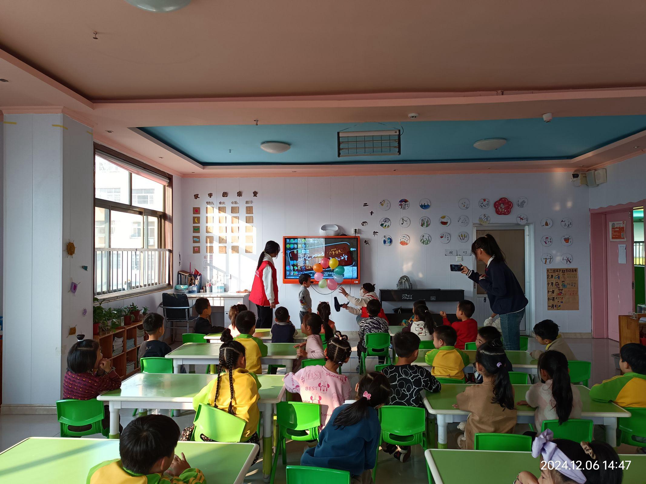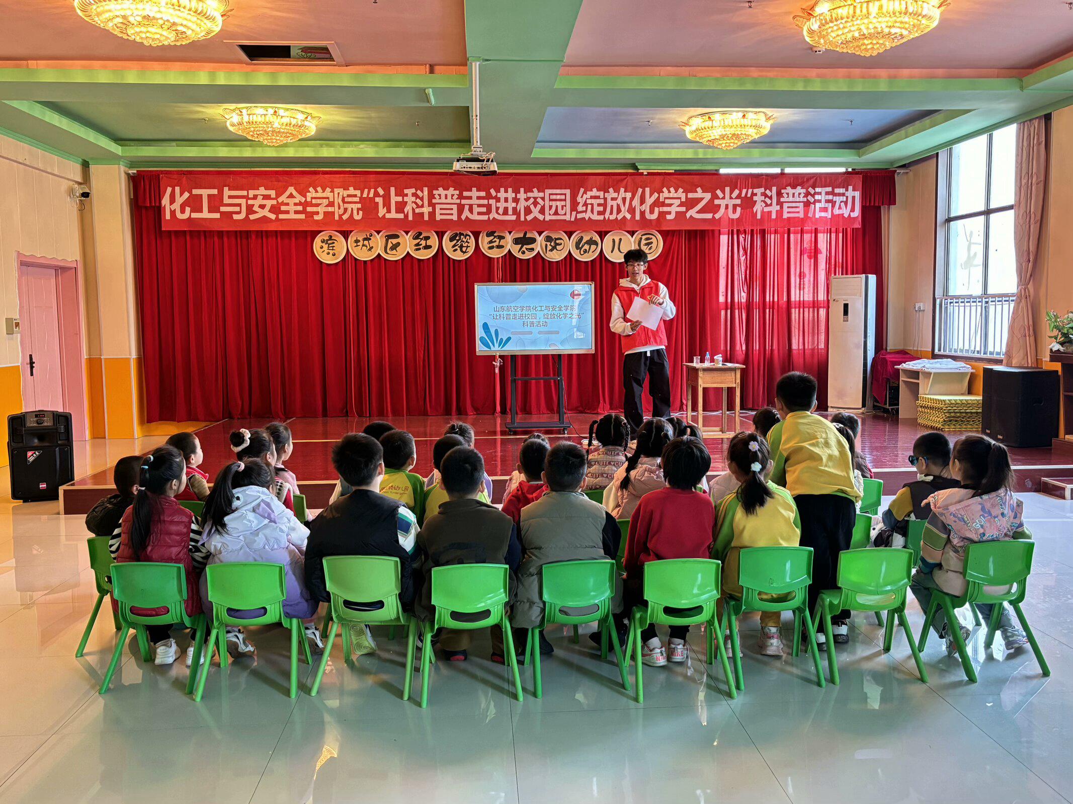 12月6日,我院举办以“让科普进校园,绽放化学之光”为主题的志愿服务活动。此次活动共有34名志愿者前往红缨红太阳幼儿园进行科普宣传。