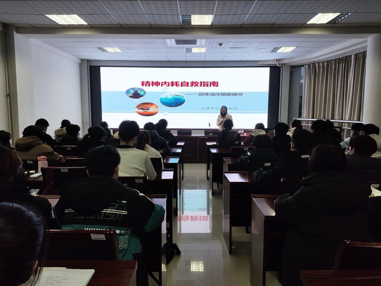 12月9日,我院在九教313教室举办心理培训讲座,旨在帮助学生缓解学习和生活中的压力,提升心理韧性和应对能力。本次讲座特邀心理健康教育与咨询中心主任张欣艺担任主讲人,2022级、2023级及2024级各班班委参与。