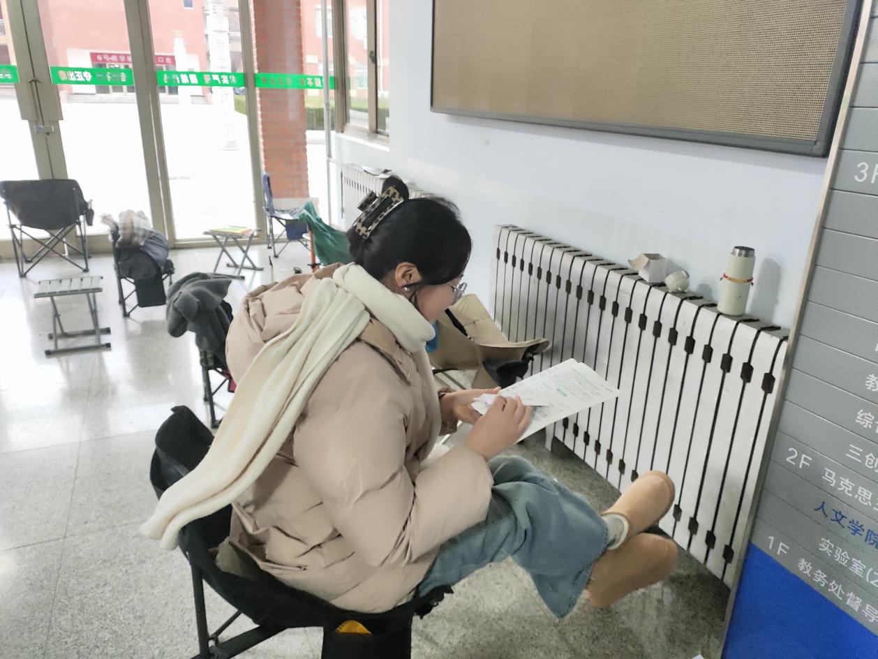 学生们组成流动小组,在教学楼旁寻找正在备考的考研学生,亲手将这些温暖的礼物送到他们手中,并送上真挚的祝福和鼓励。备战考研的学生们对这份突如其来的温暖礼物感到惊喜,这些真挚的话语如同冬日里的暖阳,慰藉了他们疲惫的心灵,激励他们在考研的道路上更加努力,勇敢追逐梦想。