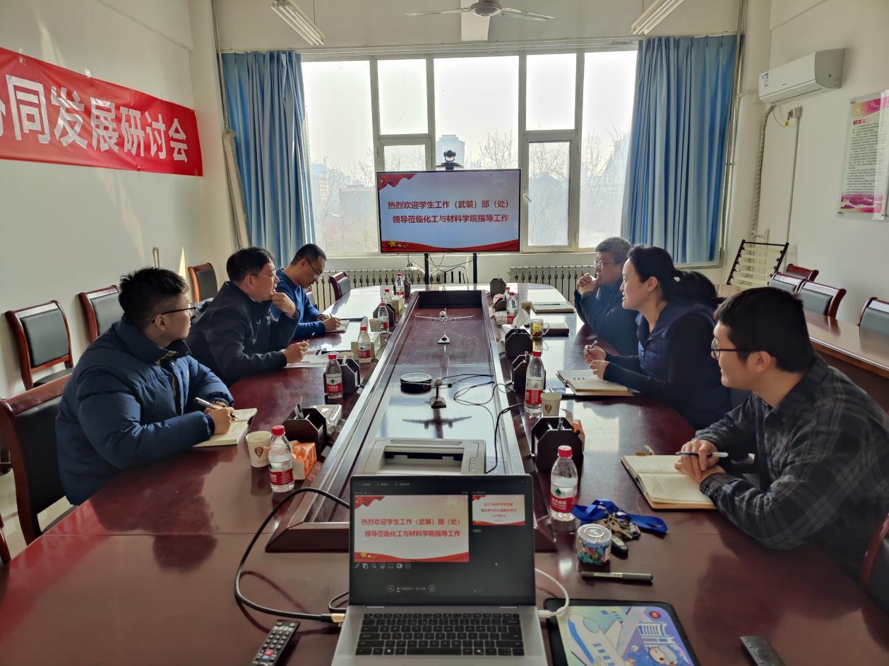 3月6日,学生工作(武装)部(处)处长李帅、副处长王泰宁及刘成肖一行莅临我院调研指导工作。我院党委书记王建、党委副书记李芳及学院辅导员参加了调研座谈会。