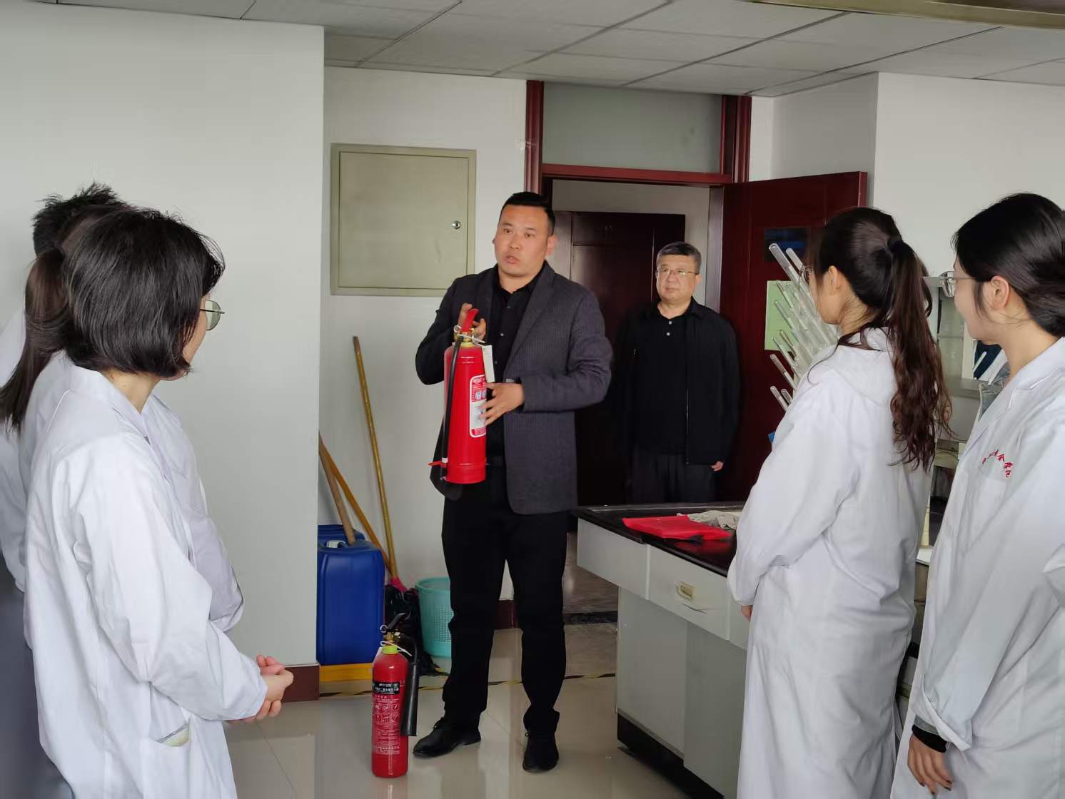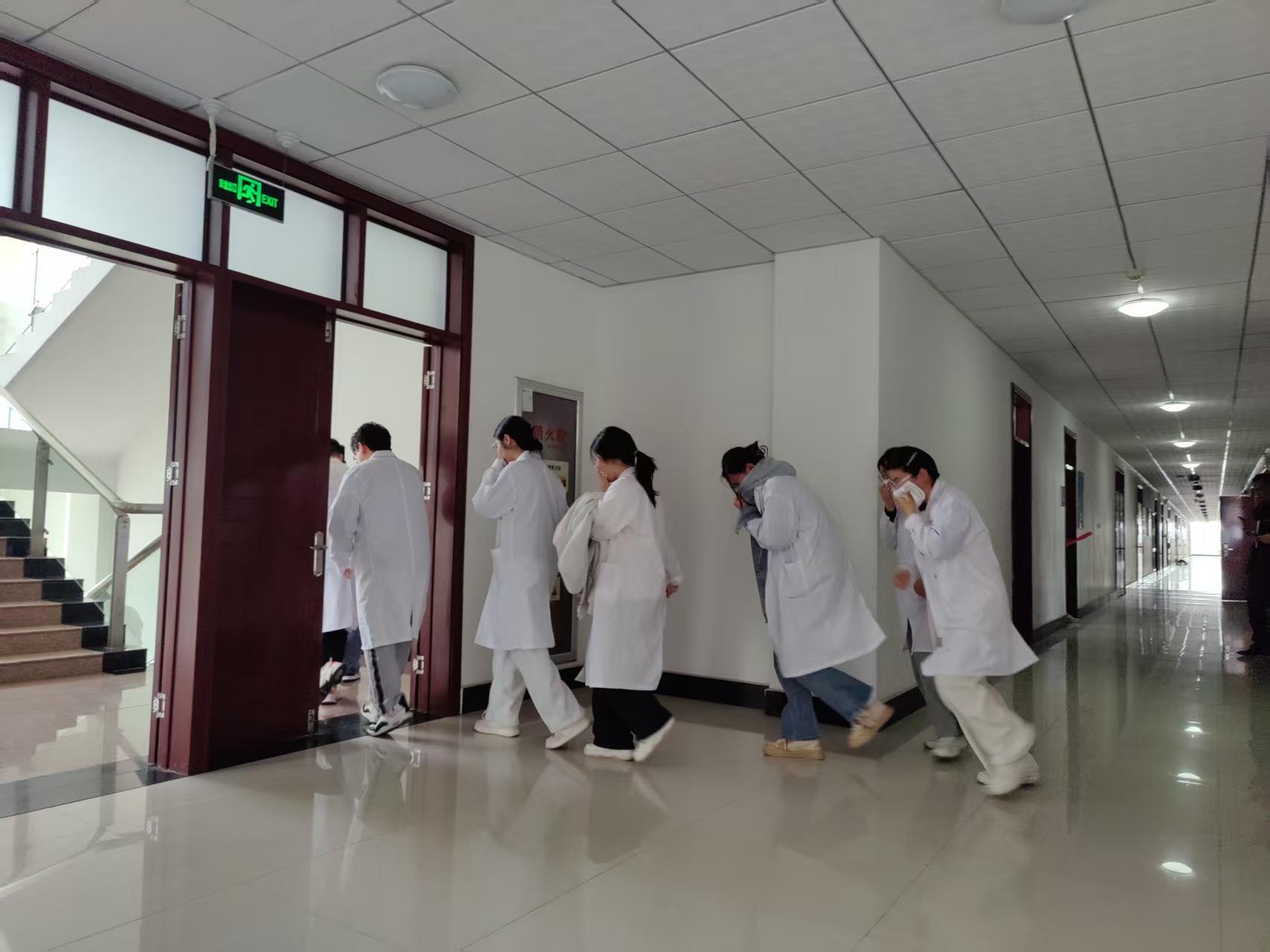 活动伊始,学校保卫处王亮亮老师结合校园消防安全实际,围绕火灾预防、消防器材使用,出现火情时安全疏散的要点等核心内容进行细致讲解。随着火灾预警警报响起,紧张有序的疏散演练正式启动。各位师生严格按照预定的程序行动,各位指挥教师迅速到岗,冷静果断地组织学生沿着预设的疏散路线,低头弯腰、捂住口鼻,迅速从实验室撤离,有序抵达楼下空地。随后,各位带队人员迅速清点党员人数,并向演练指挥小组汇报情况。整个疏散过程高效流畅、安全有序。
