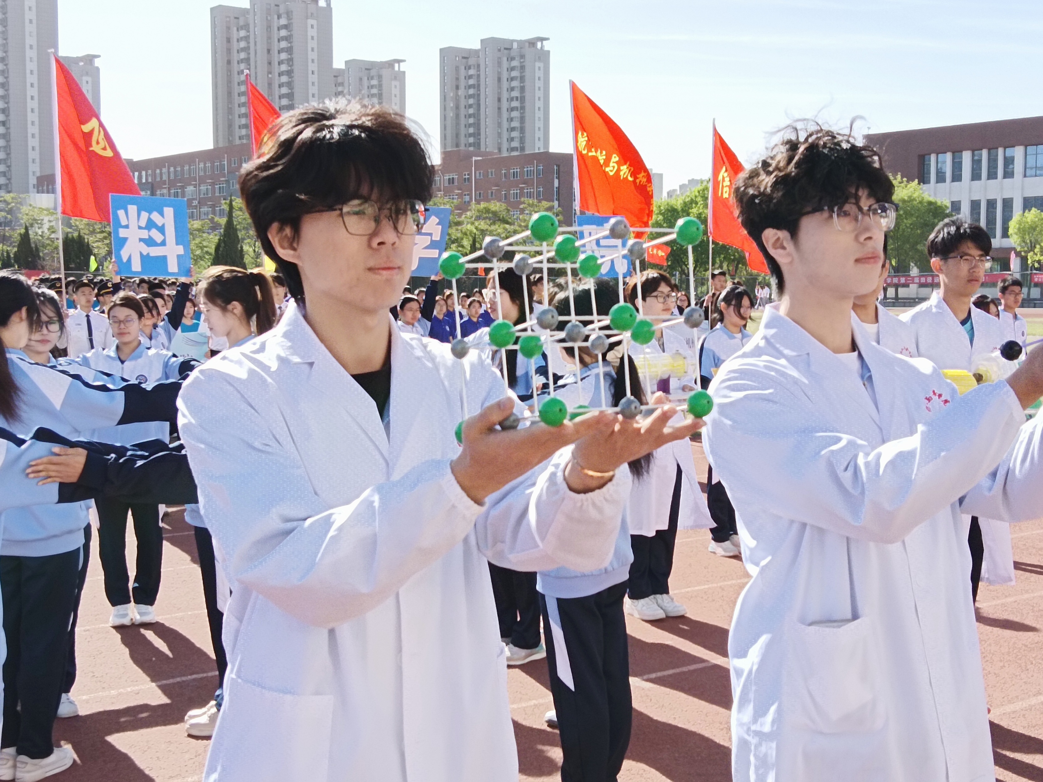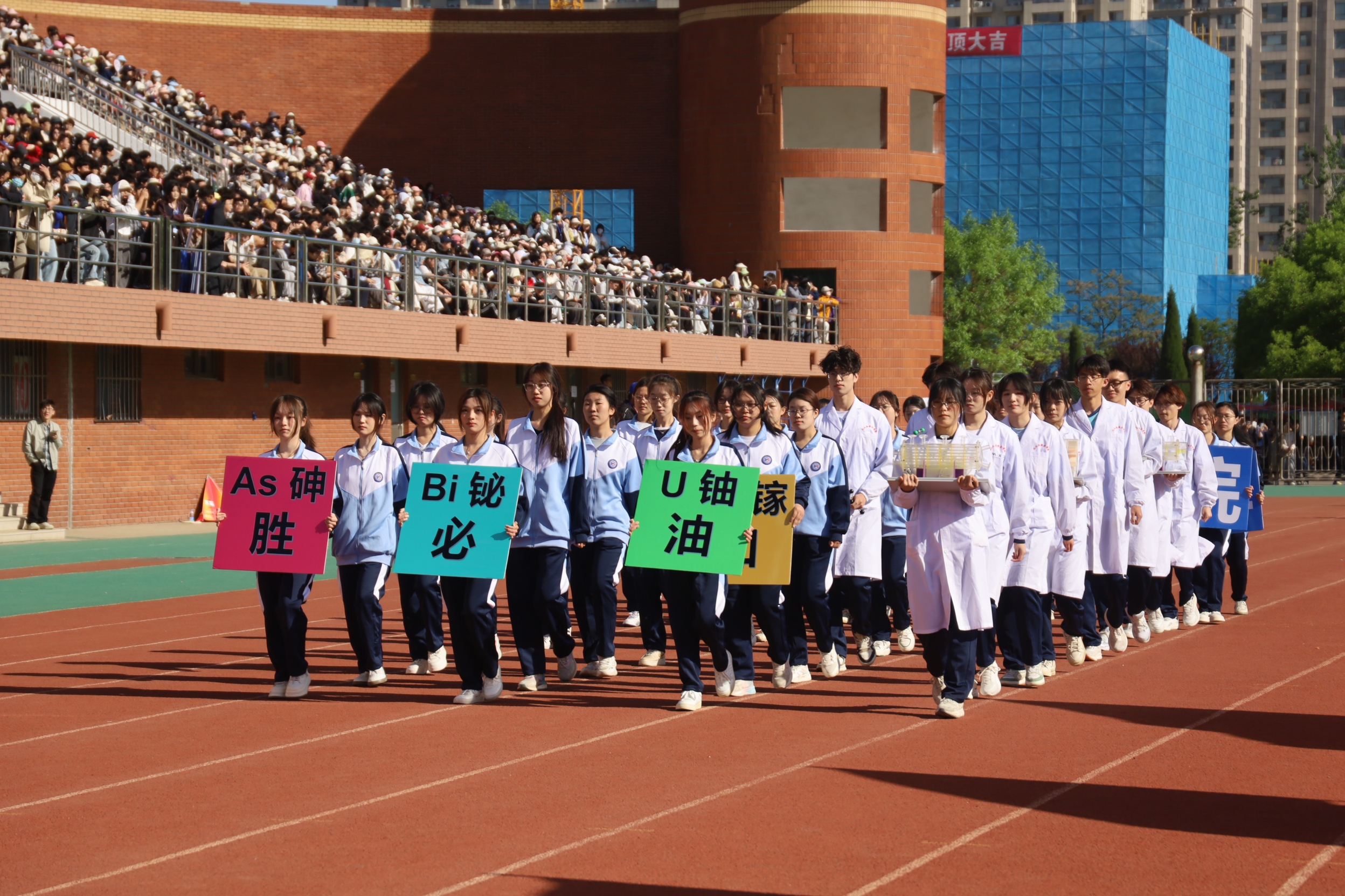 开幕式上,学院方阵一登场便引爆全场!“看!那是我们的‘分子结构’方阵!”随着队伍变换,同学们手持仪器、分子模型等道具,以灵动队形演绎化学与材料的无限可能。一组组创意动作宛如动态的学科名片,让观众直呼:“不愧是化院人,连开幕式都带着实验室的浪漫!”