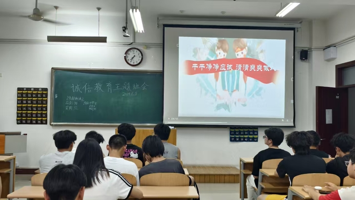 2025年6月8日,我院组织全体学生召开英语四六级考试诚信教育主题班会,学生科辅导员、班主任及学生干部负责召开,通过政策解读、案例警示、承诺签署等形式,强化考风考纪教育,确保学院考生以诚信姿态迎接6月14日的全国大学英语四六级考试。