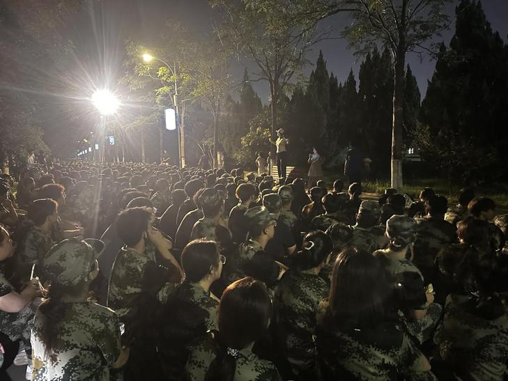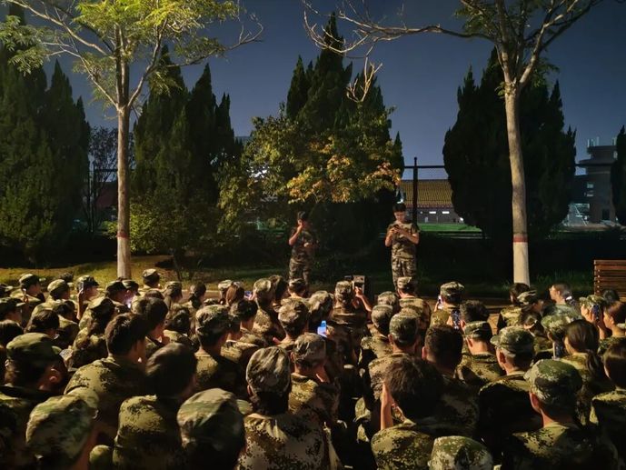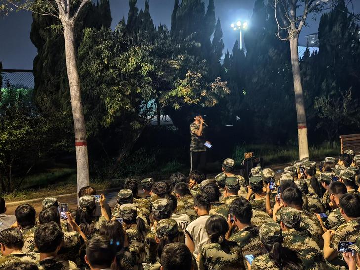 自9月8日晚起,我院2025级新生在军训场上展开了一场“只闻歌声不见舞台”的特殊训练,备战即将举行的校军歌红歌比赛。